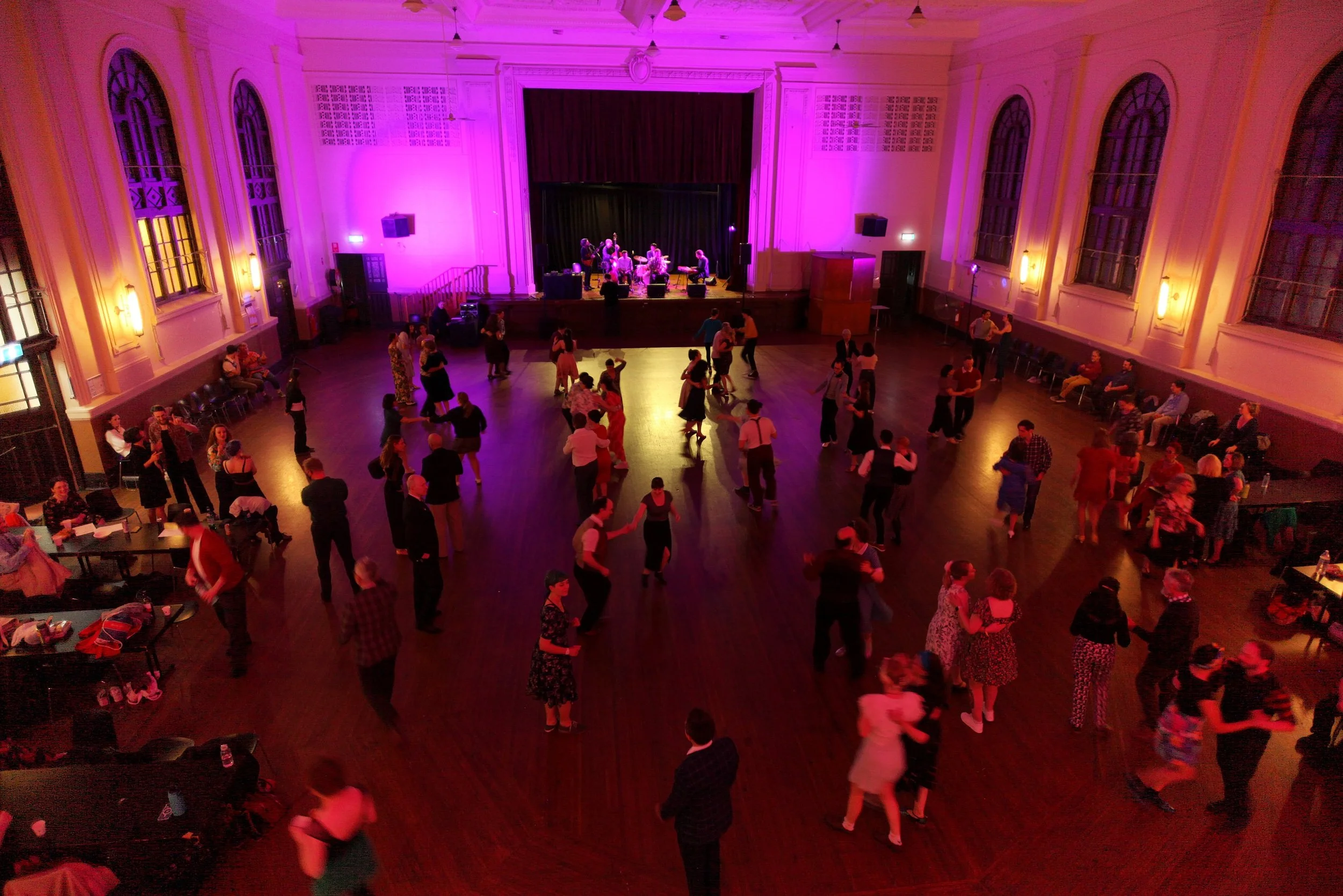Fast Foot Jam aims to bring together dancers from across the country to share their love of partner dancing and explore dance styles well suited to fast jazz music such as Collegiate Shag, Balboa and the Lindy Hop. To achieve this, we provide a healthy balance of workshops, geek out sessions, performances, competitions and of course - social dancing with some of the best swing jazz musicians in Australia.